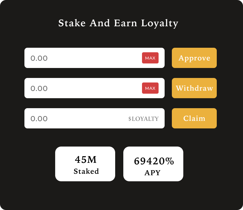 In this unique loyalty-based system, participants have the ability to exchange their loyalty for a digital asset called "Loyal" at any time. However, each exchange comes with a cost as it burns a certain amount of their loyalty. The loyalty itself holds a fixed value, with 1 loyalty always equivalent to $1 worth of Loyal.